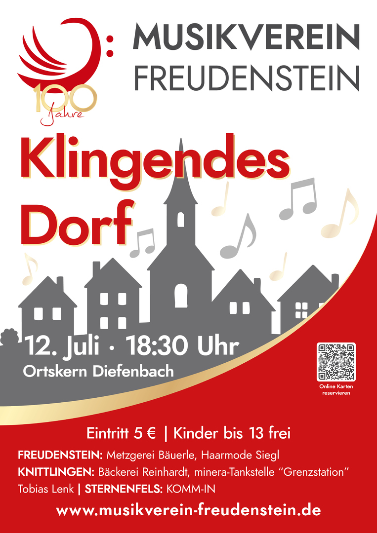 Was 2009 seinen Anfang nahm, wurde zur stimmungsvollen Tradition: Der Musikverein Freudenstein ließ die historische Ortsmitte von Diefenbach alle zwei Jahre in einem besonderen Licht erstrahlen – oder besser gesagt: erklingen. Bis zur coronabedingten Pause wurde das Dorf regelmäßig zum „Klingenden Dorf“ – und 2025 kehrt dieses musikalische Erlebnis eindrucksvoll zurück!